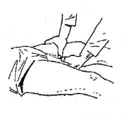 Fig. 30. Primul ajutor pentru o plaga longitudinala a mainii |