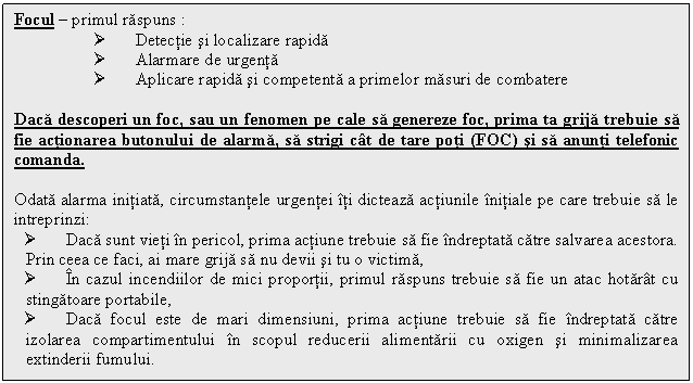Succesul combaterii focului sta aproape intotdeauna in actiunea decisa si competenta asupra acestuia, pe perioada de aprindere sau cel putin inaintea fazei 3.