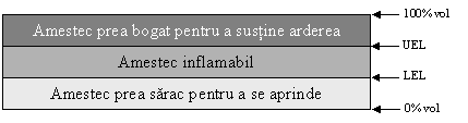arderea Amestec inflamabil Amestec prea sarac pentru a se aprinde UEL LEL 0%