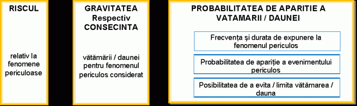 Revenind la definitia RISCULUI, acesta reprezinta PROBABILITATEA ca un EVENIMENT PERICULOS sau o SITUATIE PERICULOASA sa antreneze CONSECINTE nedorite, in conditii determinate.