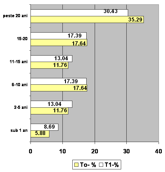 Fig. nr. 1.1 Evolutia structurii lucratorilor dupa vechime