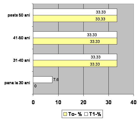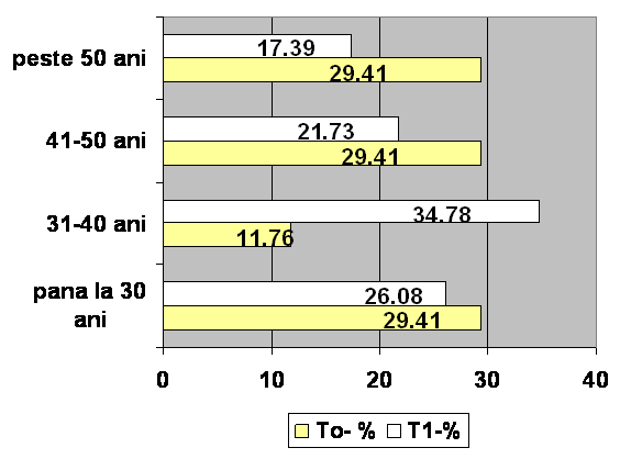 Fig. nr. 1.3 Evolutia structurii lucratorilor dupa varsta