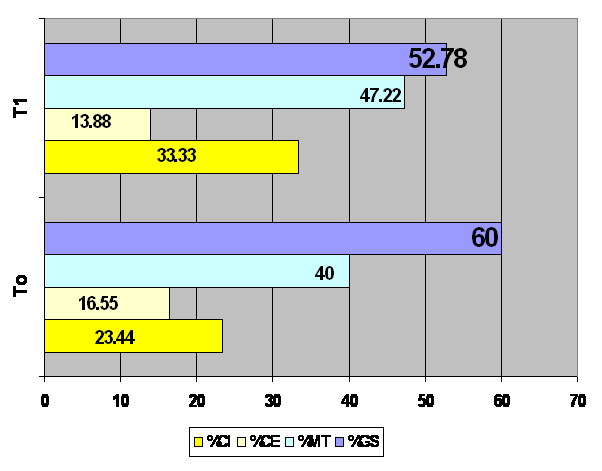 cu studii superioare a cunoscut o crestere de 11% reprezentand la momentul T0