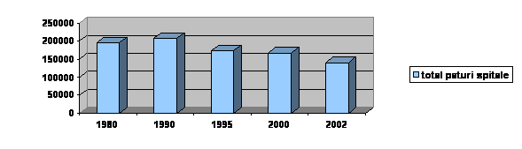Daca adancim analiza retelei sanitare, prin luarea in calcul a numarului de paturi aflate in toate unitatile de sanatate, se disting doua perioade pe termen lung si doua tendinte contrarii: 1950-1990 cand, atat in marimi absolute cat si in marimi relative, numarul paturilor de spital a crescut continuu, si 1990-2002, cand se manifesta diminuarea numarului de paturi, atat inmarimi absolute cat si la mia de locuitori, ultimul indicator fiind atenuat de fenomenul descresterii numarului populatiei Romaniei, manifestat dupa anul 1989.