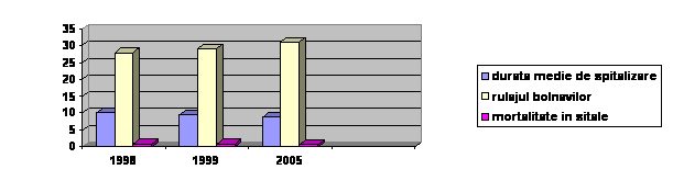 c. durata medie de spitalizare a scazut in anul 2005, atat pe total tara, cat si la sectiile de interne, pediatrie, obstetrica-ginecologie si chirurgie; pe judete este mai mare in Ilfov, Arad, Bihor, Covasna, Timis si Sibiu;