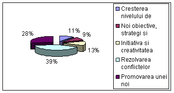 La intrebarea "Ce ar fi de dorit sa fie incurajat, in acest moment, in firma la care lucrati? -alegeti raspunsul cel mai important:" raspunsurile din chestionare erau: