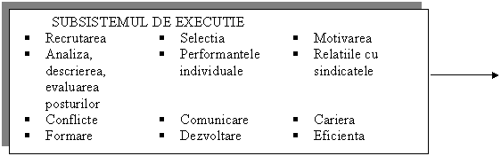 mecanisme ce stimuleaza participarea angajatilor la procesele decizionale ale organizatiei. Subsistemul staffing-ului are caracteristici dimensionale (marimea sau amploarea subsistemului, structura sa in functie de profesiuni, de gradul mediu de calificare, de aptitudini, de experienta profesionala, atitudinile pe care le pot adopta lucratorii si costul implicat in constructia initiala a subsistemului) si caracteristici functionale ce se refera la productivitatea muncii, la fiabilitatea fortei de munca, calitatea acsteia, la fluctuatia si la gradul de participare la procesele desfasurate in cadrul organizatiei.