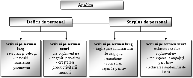 Fig. 10.2. Modalitati de actiune in cazul unor diferente intre disponibilul si necesarul de personal