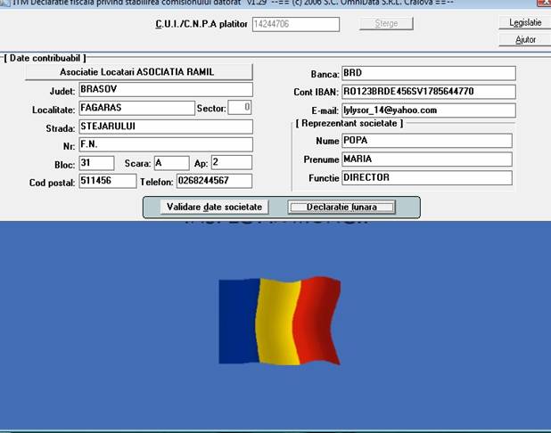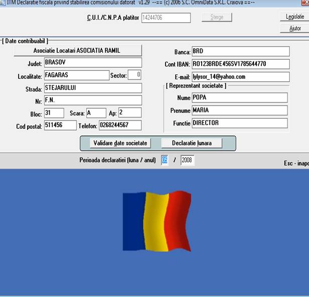 Dupa ce a fost selectata optiunea << Validare date societate >> se apasa butonul << Declaratie lunara >> si se introduce luna si anul pentru care se completeaza raportarea. In cazul in care declaratia pentru luna respectiva a fost completata anterior, programul o afiseaza pentru a fi modificata sau completata.