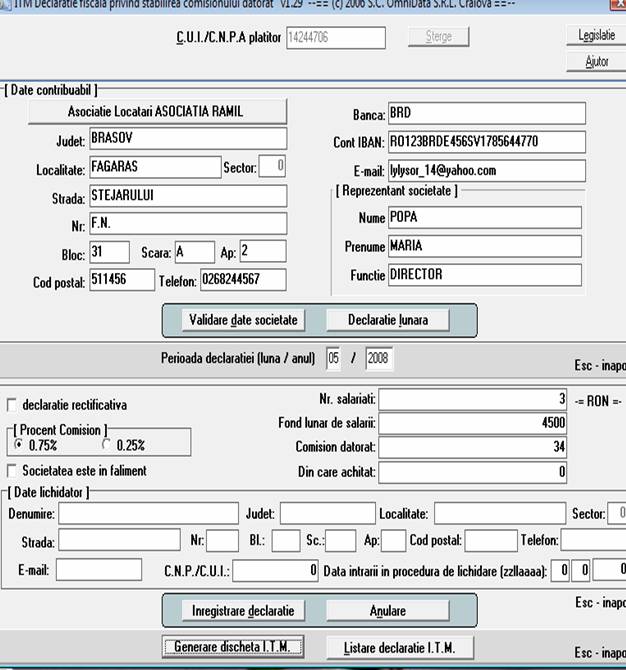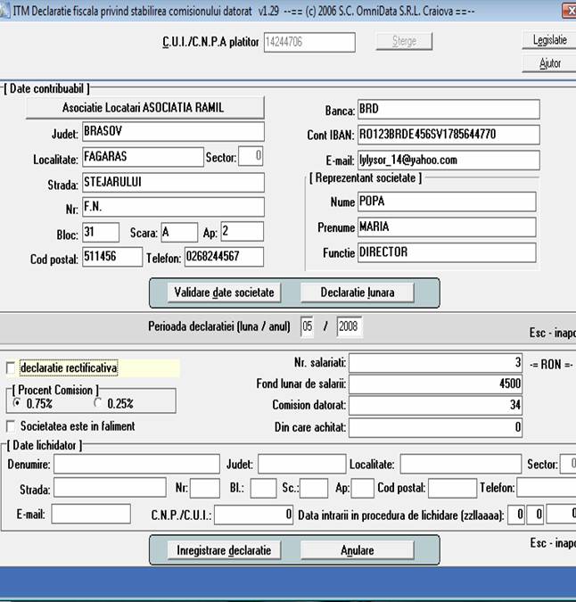 Dupa culegerea tuturor campurilor se selecteaza optiunea <<Inregistrare declaratie>> pentru ca datele completate sa se salveze pe hard disk.