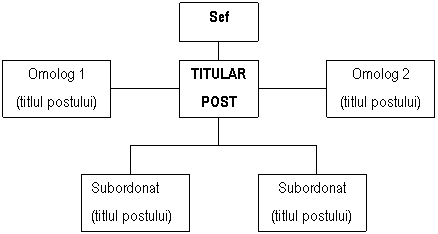 Organigrama referitoare la post trebuie sa indice intr-o forma grafica adecvata relatiile ierarhice si functionale ale postului, potrivit modelului urmator: