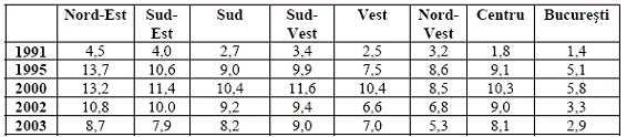Evolutia ratei somajului pe regiuni si pe ani[5]
