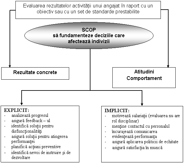 Dupa , citat in , obiectivele evaluarii performantelor pot fi clasificate asa cu rezulta din Tabelul 8.5.