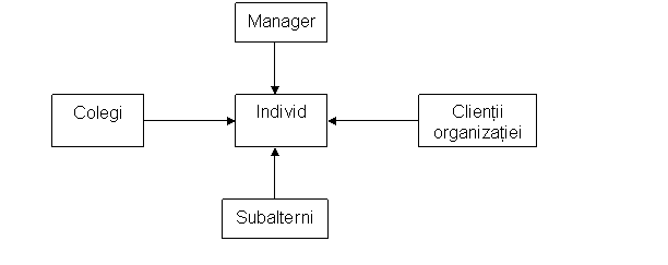 Feed-back-ul de 360 de grade cunoscut si sub denumirea de "evaluare prin surse multiple" presupune obtinerea de informatii si comentarii despre angajat de la seful ierarhic superior, de la colegi, de la subordonati, de la angajatul insusi si, daca este cazul, de la clientii organizatiei (Fig. 3.3.)