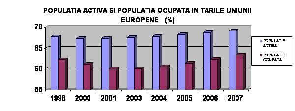 Valoarea minima a procentului populatiei ocupate a fost inregistrata in anul 2003 in Spania - 46,20% iar valoarea maxima in anul 2001 in Suedia: 79,50%. Valoarea minima a procentului populatiei active a fost inregistrata tot in anul 2003, dar in Italia: 57,40% iar valoarea maxima tot in 2001, tot in Suedia - 82,70%. Constanta tarilor cu valori minimale: Spania, Italia si Grecia, respectiv a tarilor care au procente mari de populatie ocupata si activa: Danemarca si Suedia lanseaza ipoteza unei segregari geografice a pietei muncii in spatiul Uniunii Europene.