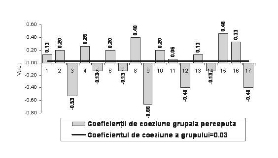 Rezultatele obtinute in urma completarii chestionarului de catre cei 17 membrii ai echipei pot fi reprezentate cu ajutorul urmatoarei histograme.