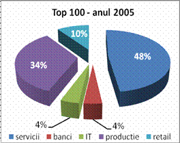 In antiteza, companiile cu profil de productie prezinta o tendinta descrescatoare in prezent in aceste topuri, astfel daca in 2005 erau prezente in procent de 34% s-a ajuns ca in 2007 si 2008 procentul acestora sa scada la 22-25% .