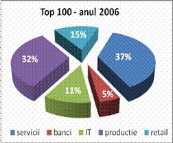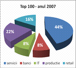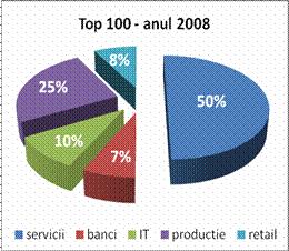 Din graficele prezentate se observa ca ponderea prezentei in top o au companiile a caror activitate este in sfera prestarii serviciilor, aceasta ridicandu - se la un nivel de 50 % in 2008. Explicatia poate fi data de ponderea ridicata de peste 70% a companiilor cu capital mixt in aceasta categorie cat si de facilitatea aplicarii normelor si principiilor culturii organizationale si de motivare a salariatilor .