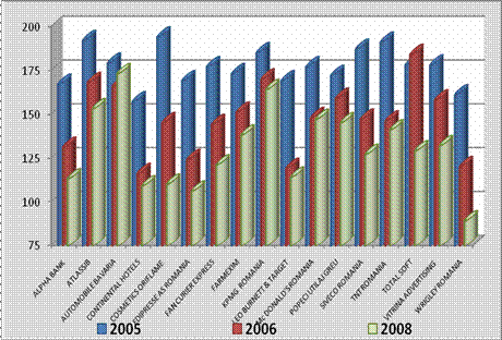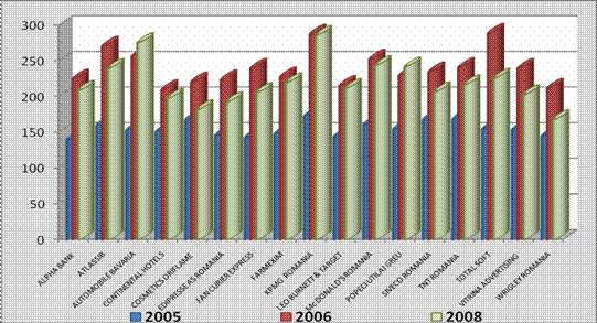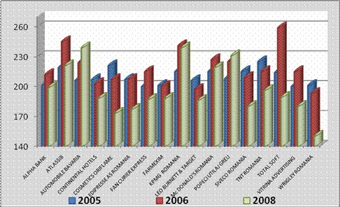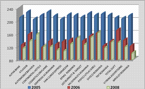 O analiza comparativa a celor 4 topuri "100 cele mai bune companii pentru care sa lucrezi" publicate de revista CAPITAL in perioada 2005 -2008 pune in evidenta urmatoarele: