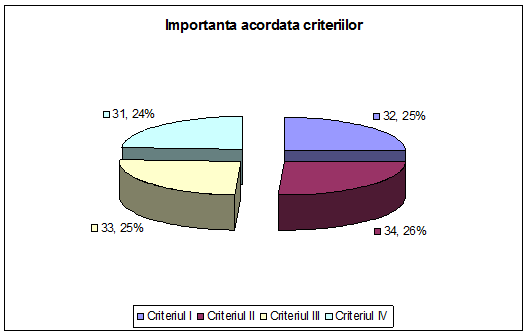Pentru importanta criteriilor a fost utilizata o scala de la 1 la 5, unde 1 inseamna "deloc important" si 5 inseamna "foarte important", iar pentru satisfactie o scala de la 1 la 5, unde 1 inseamna "complet nesatisfacut (nemultumit)" si 5 inseamna "extrem de satisfacut (multumit)".