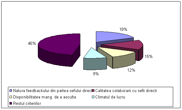 Criteriul 2 - "calitatea colaborarii" care grupeaza 10 criterii printre care : respectul cu care este tratat angajatul, feed-back-ul din partea sefului, atmosfera de lucru si gradul de implicare al managementului;