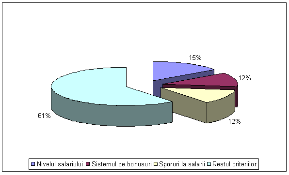 Criteriul 3 - "pachetul salarial" care grupeaza 10 criterii printre care : nivelul salariului, sistemul de bonusuri / prime pentru recunoasterea meritelor, facilitatile medicale;