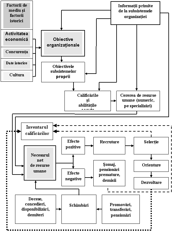 Se poate remarca faptul ca raportul dintre cererea de resurse umane (numeric si pe categorii), dedusa din obiectivele organizatiei si din obiectivele subsistemelor acesteia, pe de o parte, si necesitatile nete de resurse umane, pe de alta parte, este diferit de unitate; "intrarile" si "iesirile" din sistem nu pot fi anticipate cu mare acuratete, datorita unui anumit grad natural de mobilitati. De altfel, marile companii prefera sa aiba un usor surplus de personal, pentru a face fata eventualelor suplimentari de produse si de servicii cerute de piata.