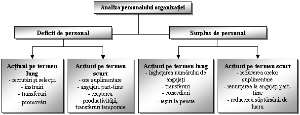 Fig. 4. Modalitati de actiune in cazul unor diferente intre disponibilul si necesarul de personal