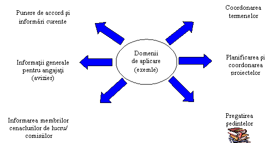 sprijinirea proceselor de decizie in grup. Pachetele de programe pentru lucrul in grup permit sprijinirea pregatirii, desfasurarii si a evaluarii sedintelor si a conferintelor. In acest scop se pun la dispozitie instrumente care permit desfasurarea structurata a proceselor de luare a deciziilor, fiind astfel posibila atat coordonarea fluxurilor, cat si generarea si distribuirea directionata a mesajelor.