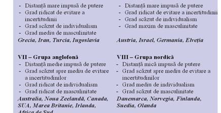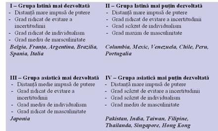 Grupele culturale rezultate din cercetarile lui Gert Hofstede: