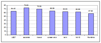 Rata totala de ocupare in UE 27 in 2006 se afla la peste 5% fata de obiectivul UE pentru 2010 (Figura 4.1.). Daca tarile cu un regim al bunastarii socialist si cele cu un regim al bunastarii liberal au depasit, in medie, pragul de 70%, tarile cu un stat al bunastarii latin si NM12 au o rata a ocuparii mult sub acest prag.