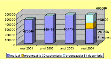 Realizarea programelor de ocupare a fortei de muncǎ in perioada ian.2002-aug.2004 si prognoza la 30 sept.-31 dec 2004