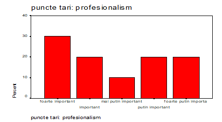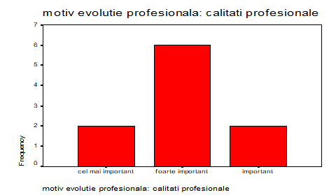 Calitatile profesionale au avut cel putin un rol important în evolutia profesionala a tuturor celor intervievati; pentru 2% având cel mai important rol, urmând ca pentru 6% calitatile profesionale sa fie foarte importante, în timp ce pentru 2% dintre cei chestionati sa fie doar important. Aceasta stare de fapt reflecta o orientare ‘‘sanatoasa’’ catre profesionalism si calitate.