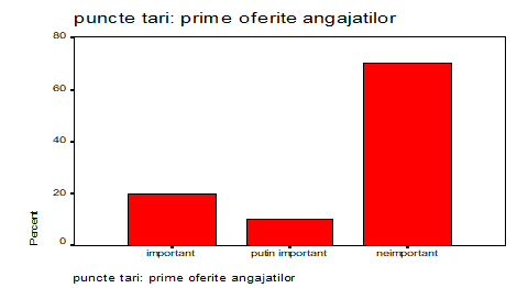 Un aspect surprinzator este obtinut la atribuirea gradului de neimportant/putin important de catre 80% dintre respondenti pentru primele oferite angajatilor în timp ce doar 20% considera ca primele oferite au o importanta. Aceasta situatie poate fi explicata printr-o satisfacere destul de ridicata a cerintelor salariale operative, astfel încat primele oferite cu diferite ocazii nu mai prezinta un interes atat de crescut.