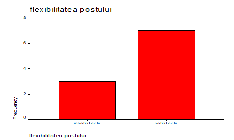 Pentru 7,5% dintre respondenti flexibilitatea postului este considerata o foarte importanta sursa de satisfactie, în timp ce pentru 2,5% dintre angajati flexibilitatea postului este considerat un aspect negativ.