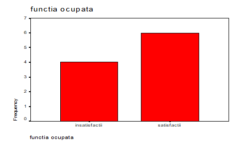 Functia ocupata este un motiv al satisfactiei la locul de munca, mentionata de 6% dintre cei intervievati iar doar 4% au inesatisfactii din punct de vedere al functiei ocupate.