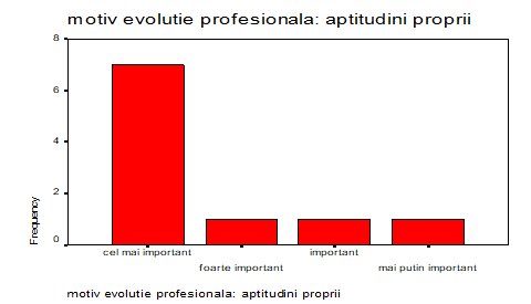 Aptitudinile proprii au fost considerate factorul principal de ascensiune în viata profesionala de catre 7% dintre cei chestionati, iar înca 1% au considerat ca aptitudinile reprezinta un factor foarte important, important al evolutiei. Doar pentru 1% nu au fost atât de relevante aptitudinile proprii.