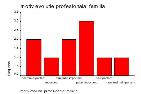 În privinta familiei si a masurii în care aceasta a contribuit la realizarea pe plan profesional a celor chestionati prin suportul afectiv si întelegerea de care a dat dovada se observa pareri împartite: doar 3% dintre respondenti au considerat ca rolul familiei a fost unul putin important, în timp ce 4% îl considera cel mai important si mai putin important.