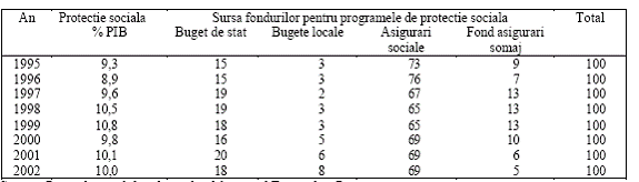 Ponderea protectiei sociale in PIB si finantarea protectiei sociale pe surse
