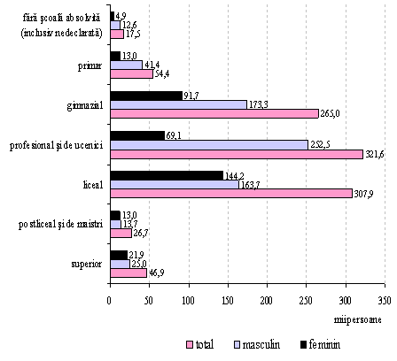 Somerii dupa nivelul de instruire, pe sexe [59]