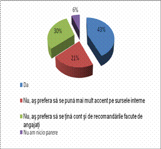 In continuare sunt prezentate detaliat raspunsurile la intrebari ale angajatilor chestionati, graficele si tabelele corespunzatoare acestora fiind in Anexa 5.