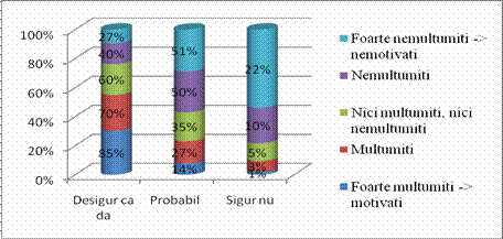 Procentul de 22% este destul de mare (Vezi Figura 13), așadar daca angajatii nemotivati ar decide sa plece si numai cei motivati ar ramane ar face bancii un serviciu, insa lucrurile nu se intampla de obicei asa. Intentia de a ramane este mai mult efectul nehotararii angajatilor spre o decizie, decat acela al unei politici reale de motivare. Ar fi de dorit ca banca sa isi imbunatateasca politica de motivare printr-un sistem mai bun de fidelizare si retentie a angajatilor.