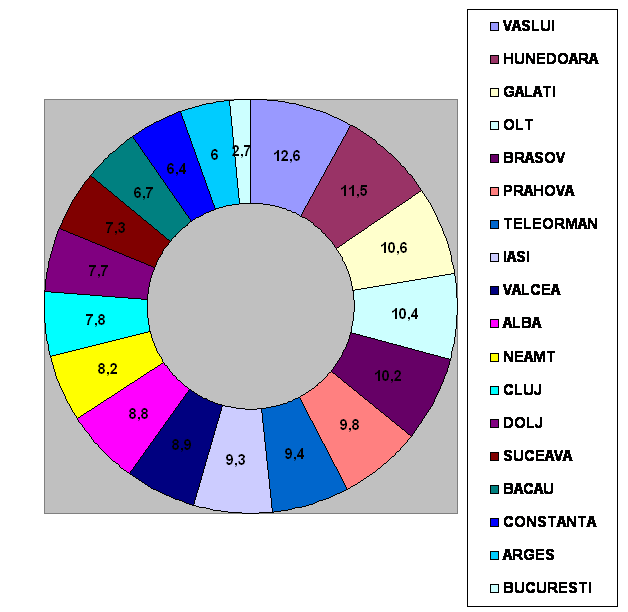 Numarul somerilor in principalele judete ale tarii in noiembrie 2003