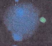 Tehnica FISH a fost adaptata pentru a putea vizualiza preparatele la microscopul cu fluorescenta din dotarea laboratorului nostru. Am preferat marcarea cu biotina si detectarea cu avidina FITC (verde) respectiv digoxigenina si detectata cu antidigoxigenin rodamina ( rosu).