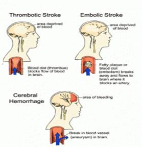 Un accident vascular cerebral presupune intreruperea brusca a aportului sanguin intr-o anumita regiune a creierului, ceea ce conduce la o leziune permanenta a creierului. Accidentul vascular cerebral se poate produce in diferite moduri. Un vas de sange din creier se poate rupe brusc, rezultatul fiind o hemoragie cerebrala, sau un cheag de sange provenit din alta parte a corpului, de regula de la nivelul inimii, poate calatori pana la un vas sanguin din creier, pe care il obstrueaza, ceea ce duce la lezarea respectivei portiuni a creierului. Acest proces poarta denumirea de embolie cerebrala. Insa cea mai frecventa cauza de accident vascular cerebral este reprezentata de tromboza cerebrala, in care un cheag de sange ia nastere la nivelul unui vas sanguin din creier, pe care il blocheaza. Acest fenomen apare mai frecvent in acel segment al arterei care este deja afectat de rigiditate arteriala, sau ateroscleroza.