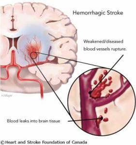 Sangerarea in interiorul creierului poate fi rezultatul unei valori crescute pe un timp indelungat a tensiunii arteriale, in timp ce sangerarea in spatiul din jurul creierului poate fi cauzata de ruperea unui anevrism, sau de tensiunea arteriala crescuta care nu a fost tinuta sub control.