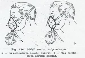 Masca: pentru oxigen ( cu inhalarea aerului expirat) se fixeaza acoperind gura si nasul. In general este greu suportata de bolnav datorita hamului de etanseizare.