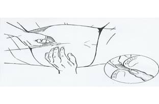 se departeaza labile cu degetele mainii stangi pentru evidentierea vaginului
