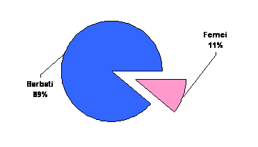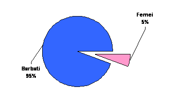Distributia pe sexe in lotul studiat este de 595 barbati (80,8%) si de 75 femei (19,2%)