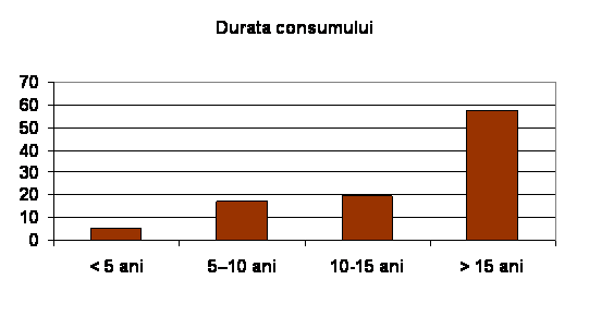 Am realizat si studiul catorva caracteristici de consum in lot. Cei mai multi pacienti consumau mai putin de 1L de bauturi alcoolice zilnic (90,47%), marea majoritate (56,19%) fiind consumatori de vin, consumatorii de bauturi distilate fiind si ei intr-o proportie foarte mare (33,33%). Cantitatile relativ mici induc in eroare, deoarece calitatea bauturii alcoolice, aratata de numarul de grame de alcool pur, incadreaza cei mai multi consumatori in categoria rnarilor bautori, cu atat mai mult cu cat durata consumului a fost cel mai frecvent (53,33%) de peste 15 ani.